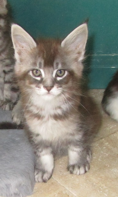 12th 2016. They are; one red ticked tabby boy, one red silver ticked tabby boy, one black silver classic tabby boy, one black silver ticked tabby boy and black silver ticked torbie girl. They are huge babies weighing from 135g to 165g. They are very tipy nice babies. This is the very first litter for Fitz.